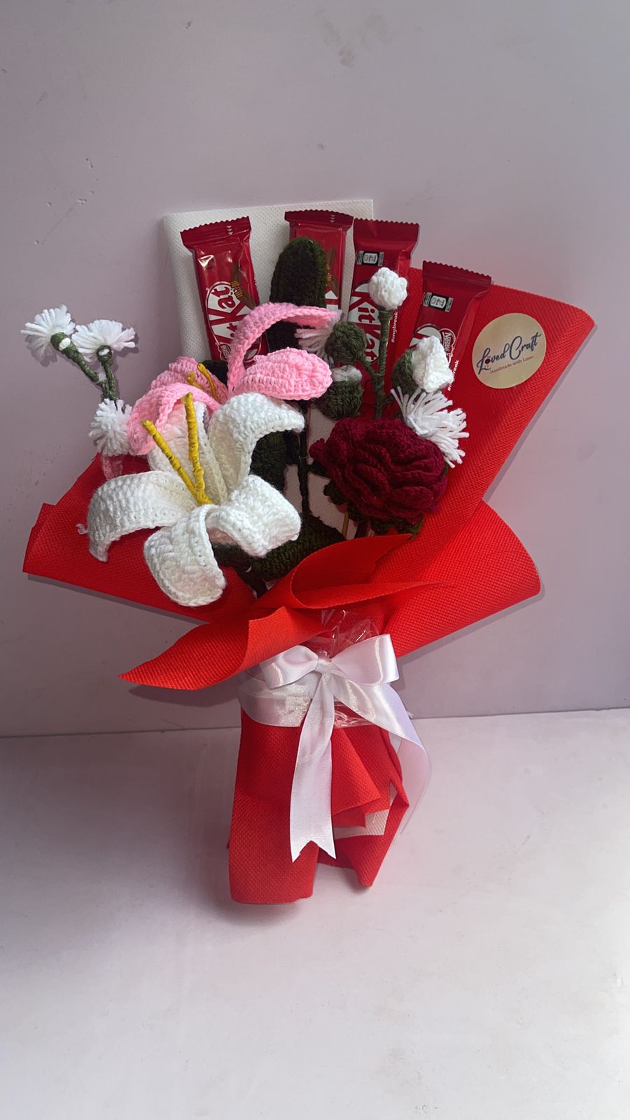 Red Lilly Crochet Bouquet