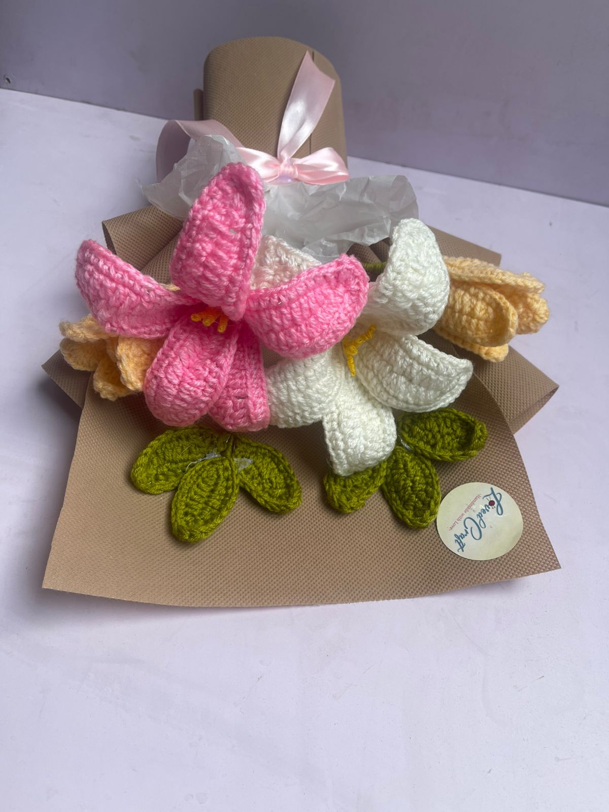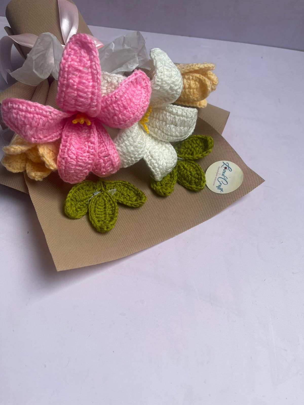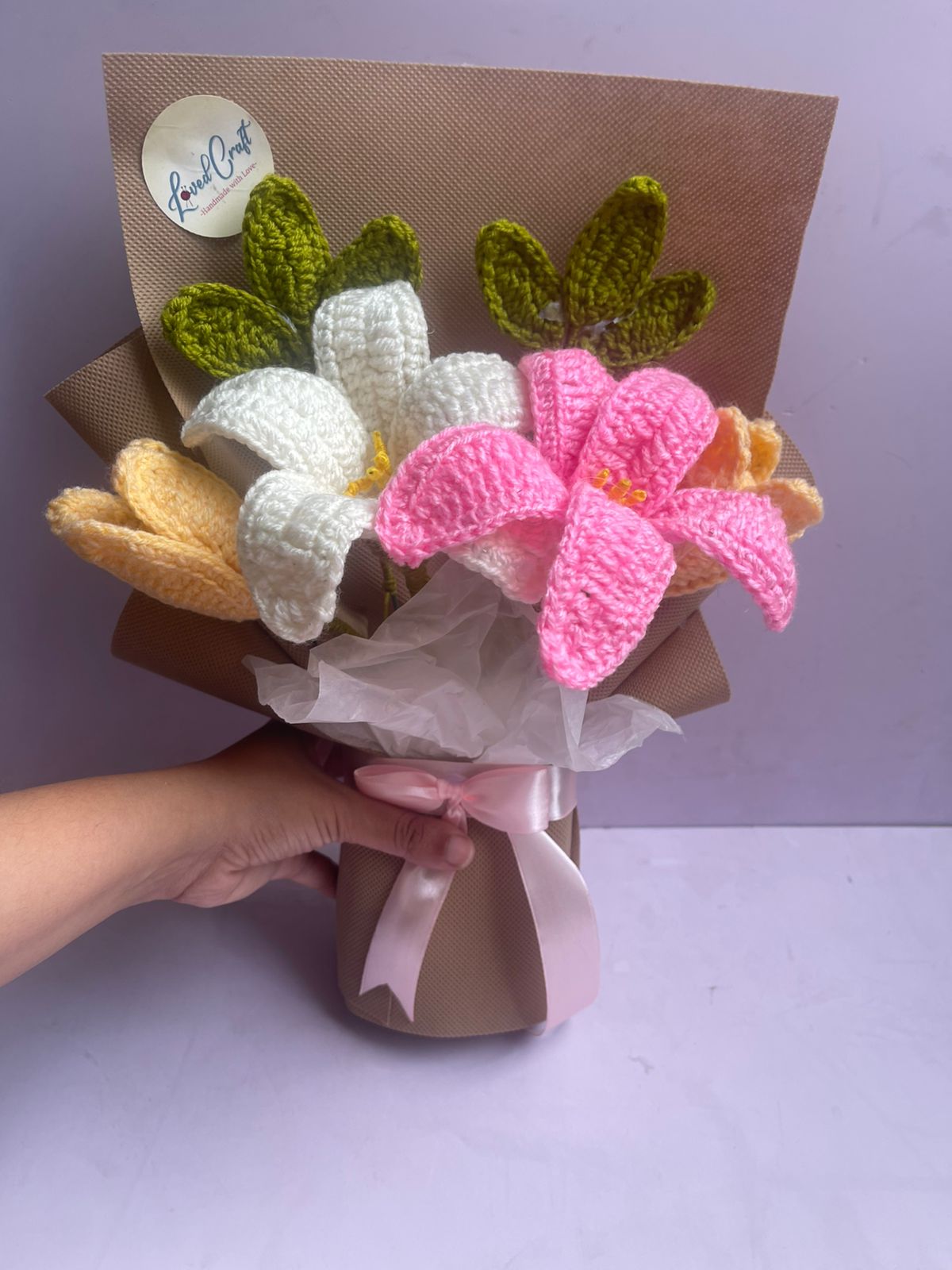 Loved Craft Pink Lily Crochet Bouquet