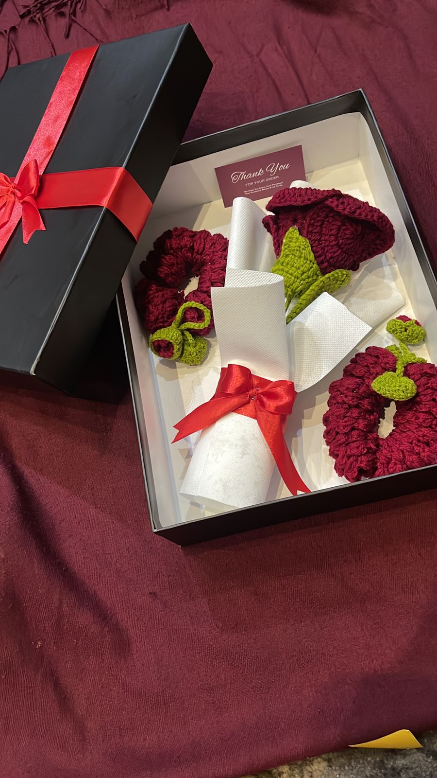 Premium Maroon Crochet Gift Box
