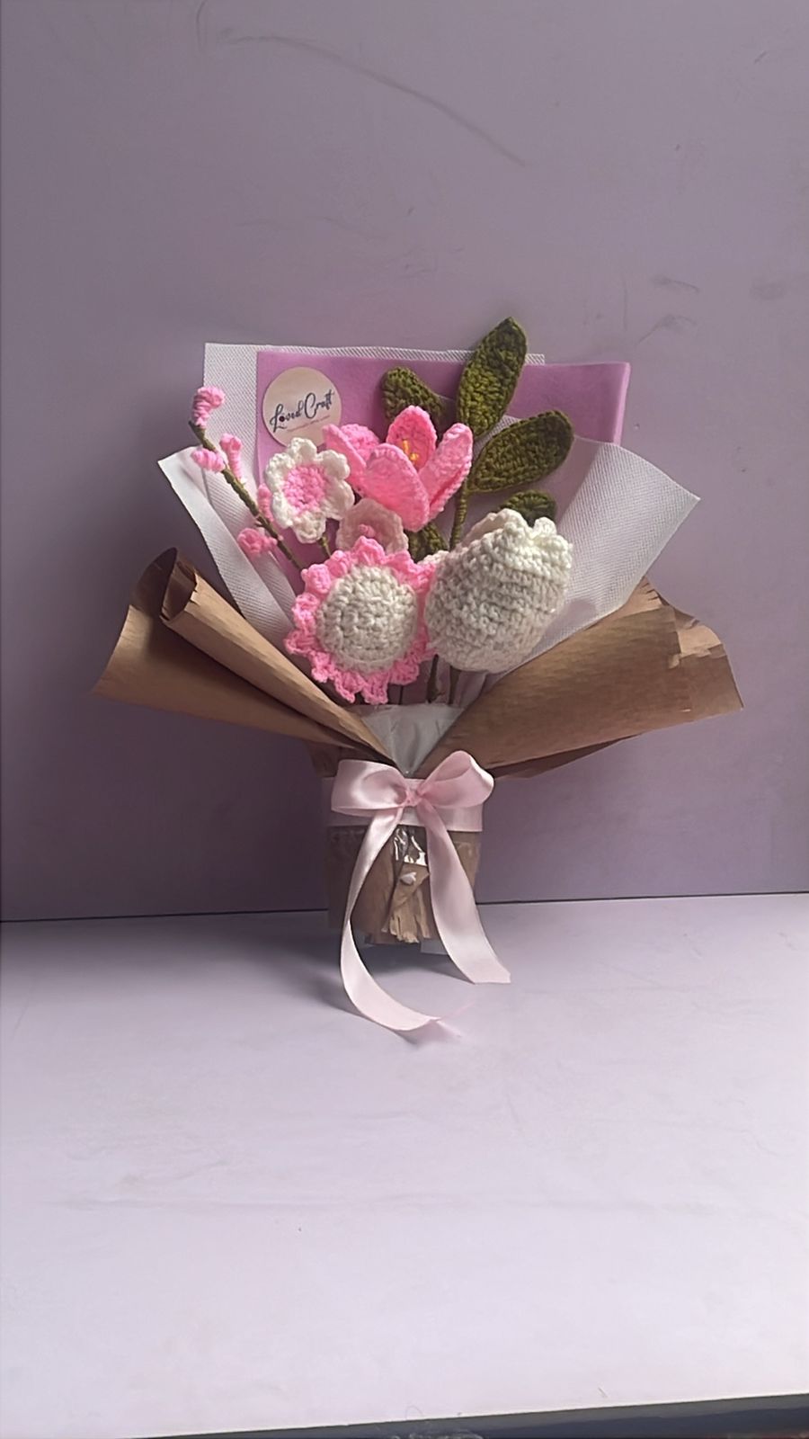A unique and charming Pink Sunflower Crochet Bouquet, handcrafted to blend the joy of sunflowers with the softness of pink tones. Made with premium-quality yarn and delicate detailing, this bouquet is a beautiful, long-lasting gift for any special moment.