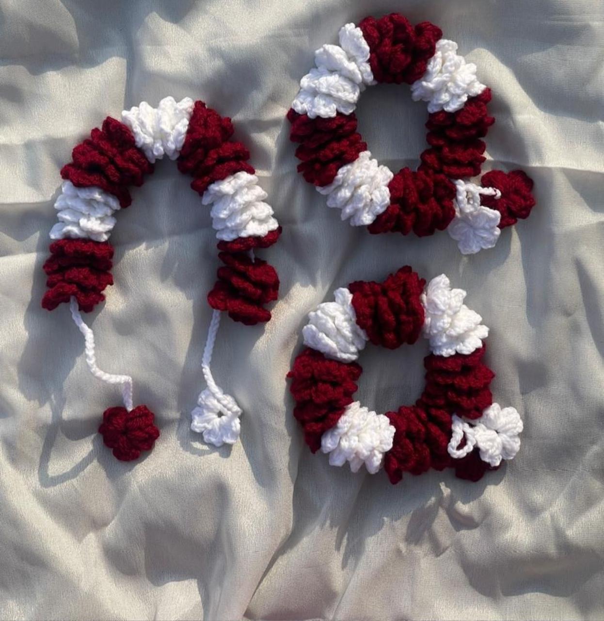 ✔️ Handmade Maroon & White Crochet Gajra